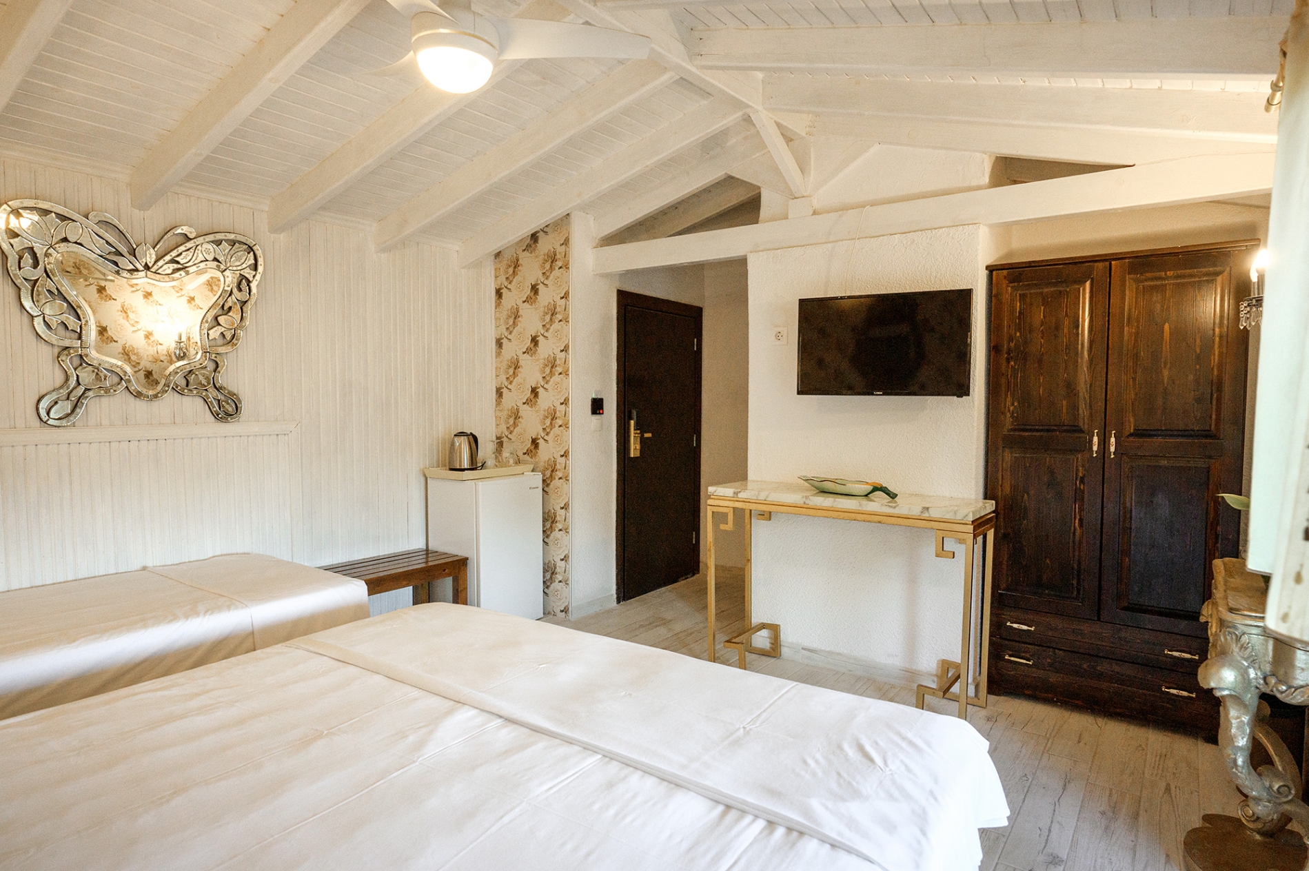 If you are looking for the perfect blend of modernity and tradition in a splendid natural environment, look no further. Our Deluxe Triple Room offers guests a unique opportunity to relax and take in that lovely vibe by the sea. Unique furniture, functional interior and a private balcony compose a great place to be, enjoying your vacations in Chalkidiki!